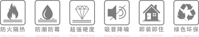 绿色环保 / 吸音降噪 / 防火隔热 / 快装快住 / 防潮防霉 / 高平整·强硬度